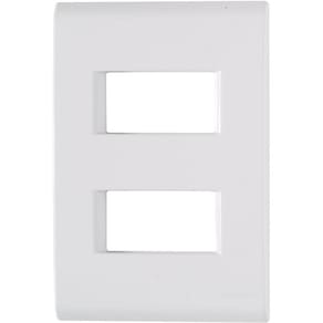 Os espaços vão ficar com mais qualidade e praticidade com a Placa 2 Postos Afastados 4x2 Tramontina Liz Branca. Produzida em termoplástico, ela possui acabamento em brilho na cor branca, característica que não retém poeira. Apresenta o modelo 4x2 e dois postos separados na horizontal para utilizar os módulos da Linha Liz. Pode ainda ser trocada por outras cores da linha, garantindo versatilidade e muito mais estilo. Possui ainda sistema modular em duas peças: placa e suporte, tendo um ajuste entre ambos que torna o acabamento entre a placa e a parede muito mais perfeito, livre de frestas. Possui furo oblongo que facilita a fixação e a regulagem da placa à parede, deixando-a reta. Para um visual ainda mais especial, a fixação não é aparente. Além disso, pode ser fixada em paredes de madeira. Uma peça com visual elegante para embelezar seus ambientes, que acompanha suporte e parafusos para a instalação.