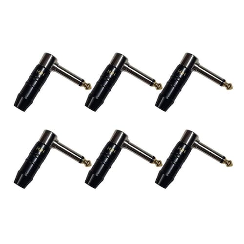 Kit 6 Plug P10 Macho Mono em L Preto Cromado 90º Profissional HJH Solda fácil Ótimo acabamento e durabilidade