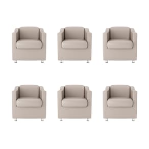 Kit 6 Poltronas Bia Decorativa Reforçada Recepção Clínica Salão Sala De Estar Courino Cinza - Bege