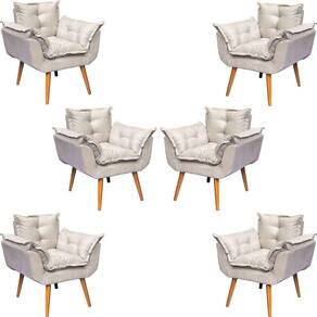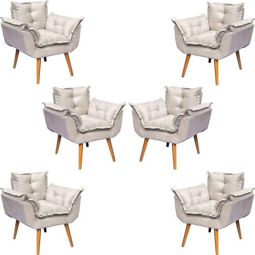 Kit 6 Poltronas Decorativa Para Sala Alice Suede Cores Pé Trapézio 30cm Castanho - Suede