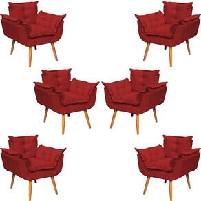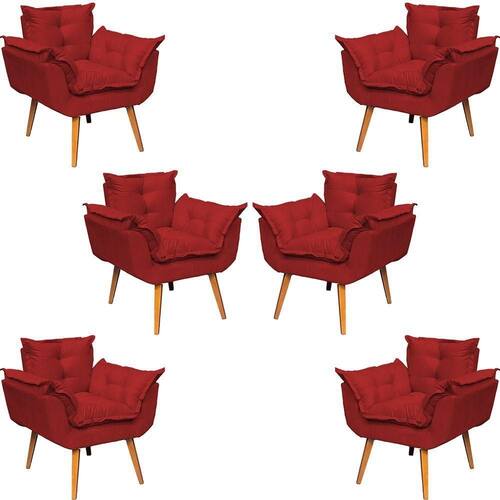 KIT 6 POLTRONAS ALICE SUEDE CORES PÉ TRAPÉZIO 30CM CASTANHO