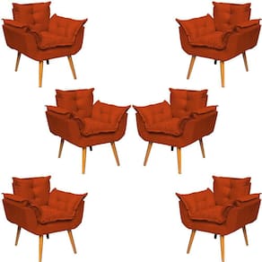 KIT 6 POLTRONAS ALICE SUEDE CORES PÉ TRAPÉZIO 30CM CASTANHO