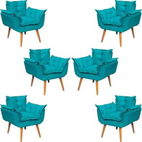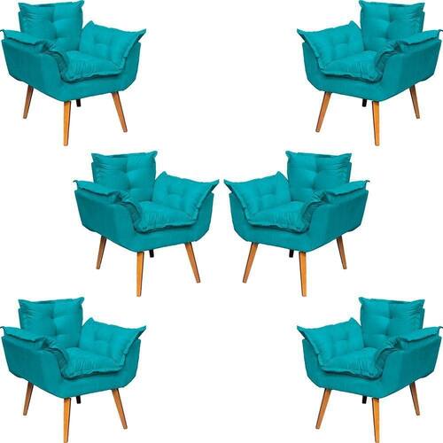 KIT 6 POLTRONAS ALICE SUEDE CORES PÉ TRAPÉZIO 30CM CASTANHO