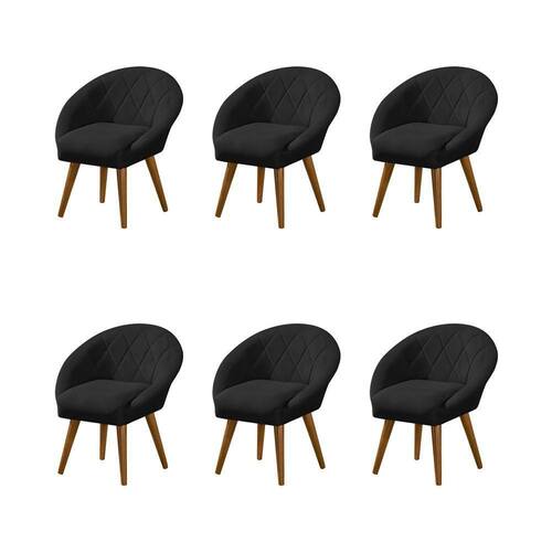 AS IMAGENS SÃO MERAMENTE ILUSTRATIVAS E PODEM SOFRER VARIAÇÕES DE COR E PEQUENOS DETALHES DE ACORDO COM O SEU MONITOR, ILUMINAÇÃO DO AMBIENTE E ATÉ MESMO A SUA PERCEPÇÃO 6 Poltronas Decorativa Canastra Estofada Linho Preto PÃs Palito em Madeira MaciÃa