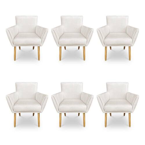 Kit 6 Poltronas Decorativa Leticia Suede Pés Palito Castanho - Pallazio Cor Grafite