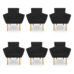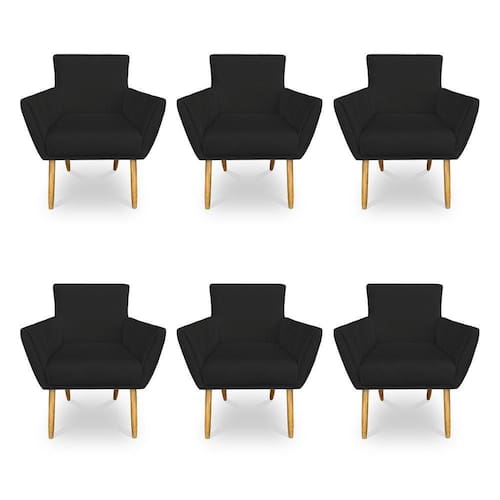 Kit 6 Poltronas Decorativa Leticia Suede Preto Pés Palito Castanho - Pallazio