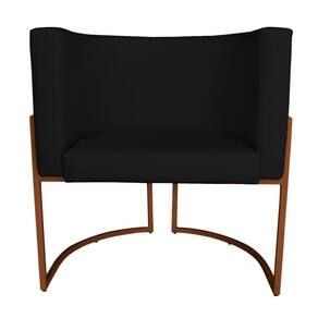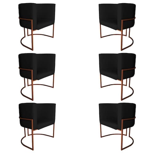 Kit 6 Poltronas Decorativa Luana Base Bronze PU Preto - Montanaris Decor