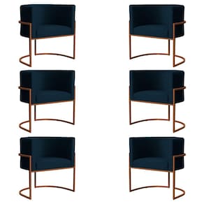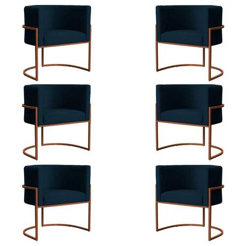Kit 6 Poltronas Decorativa Luana Base Bronze Veludo Azul Marinho uma Poltrona que trás vida ao seu ambiente. A Poltrona Luana é a mais inovadora do momento, com sua base em metal deixa o design mais sofisticado, e claro o conforto que essa Poltrona proporciona. Cada detalhe feita com matéria-prima de ótima qualidade, garantindo durabilidade do produto.