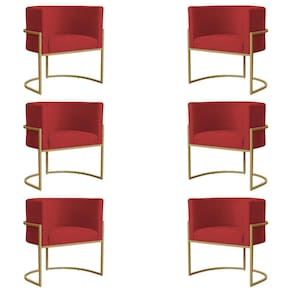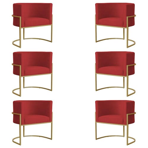Kit 6 Poltronas Decorativa Sala de Estar Luana Base Gold Suede Vermelho - Montanaris Decor