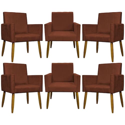 Kit 6 Poltronas Decorativas Mari - Terracota Suede - Marrom