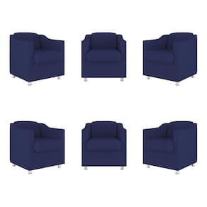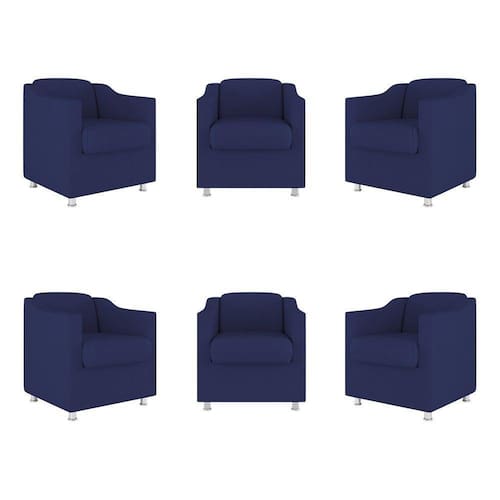 Kit 6 Poltronas Decorativas Reforçada Consultório Sala Suede Cor:azul Marinho