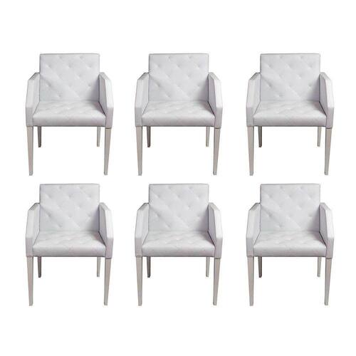 Kit 6 Poltronas Nina Costura Capitonê Em Tecido Sintético - Branco - Cor: Branco