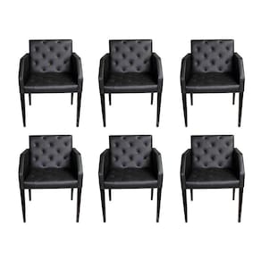 Kit 6 Poltronas Nina Retrô Estilo Capitonê Em Tecido Sintético - Preto - Cor: Preto