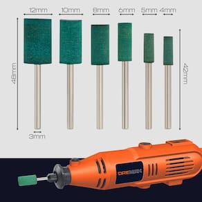 Kit 6 Pontas Montadas 4mm a 12mm Cilíndrica Borracha com Haste 3mm para Micro Retíficas Dremax - Marca: Dremax - Referência: KPM005 - Material: Borracha - Haste das pontas: 3mm - Gramatura: Grão 180 - 1 Ponta Montada Cilíndrica 12mm x 19mm Comprimento 47mm - 1 Ponta Montada Cilíndrica 10mm x 20mm Comprimento 50mm - 1 Ponta Montada Cilíndrica 8mm x 20mm Comprimento 50mm - 1 Ponta Montada Cilíndrica 6mm x 17mm Comprimento 46mm - 1 Ponta Montada Cilíndrica 5mm x 15mm Comprimento 45mm - 1 Ponta Montada Cilíndrica 4mm x 14mm Comprimento 44mm - Pontas montadas de borracha flexível, para retificação e polimento precisos - Uso em micro retíficas de qualquer marca com mandril de 3mm - Indicada para afiação, esmerilhamento e desbaste em metais, joias, pedras preciosas, vidro, entre outros materiais - Seu formato facilita o trabalho em locais de difícil acesso - Garantia: 90 dias contra defeitos de fabricação A DREMAX é a primeira e única marca brasileira dedicada exclusivamente às micro retíficas, acessórios e acoplamentos para esta indispensável ferramenta. Seja para trabalhos de precisão, artesanato, modelagem ou reparos, a DREMAX tem o produto certo para você. Marca: Dremax