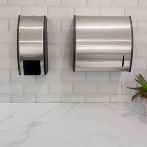 Garantia: 90 dias / Peso total: 4,98kg / Cor predominante: inox escovado / Ref.: 7794463514725; Dimensões de cada dispenser: 12cm (C) x 12,5cm (L) x 27cm (A); Capacidade de cada dispenser: 800ml; Abastecimento: sabonete em espuma; Incluso: chave, parafusos e buchas; Trava: com sistema por chave; Acionamento: manual; Materiais: - laterais e traseira: polipropileno; - parte frontal: aço inox escovado; Cuidados: não lavar com materiais abrasivo.