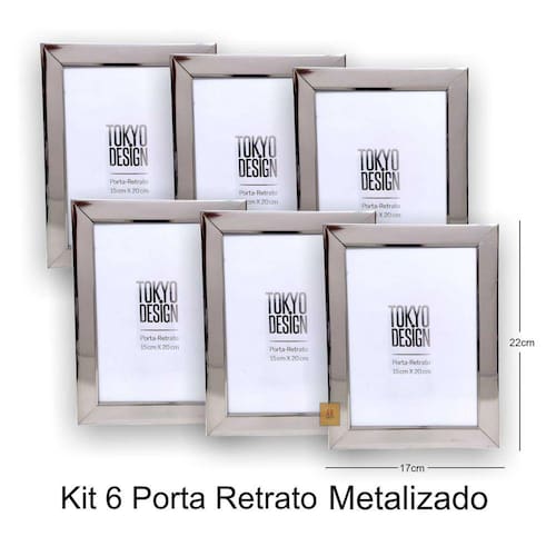 Kit 6 Porta Retrato Metalizado Luxo 15x20 Moldura de Fotos Tokyo Design