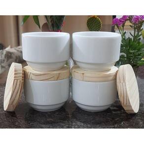Kit 6 Porta Treco / Condimentos / Mantimentos 180ml - Potes Porcelana Empilháveis Tampa Pinus