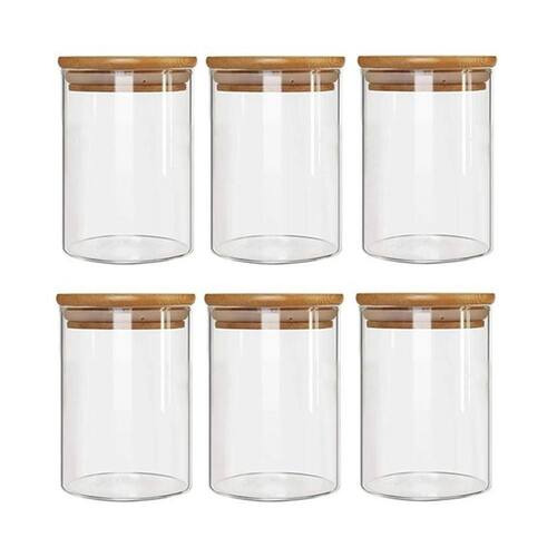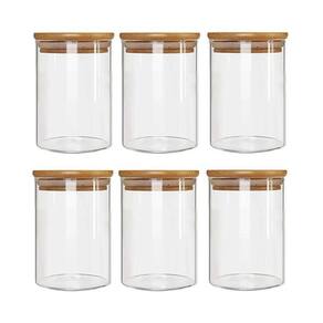 Kit 6 Potes Borossilicato Hermético Tampa Bambu 450ml Class