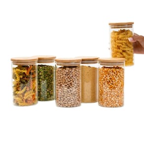 6 potes de vidro com tampa de bambu herméticos 600ml