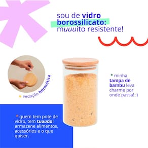 "Oii! Tüd bem? Vem saber mais sobre o kit de 6 potes de vidro com tampa de bambu herméticos de 600ml da Tüd!