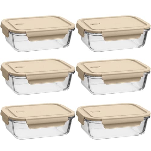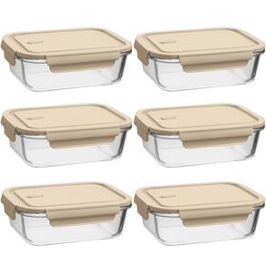Kit 6 Potes de Vidro Borossilicato 1,04L Tampa Hermética Capuccino Uz Retangular.