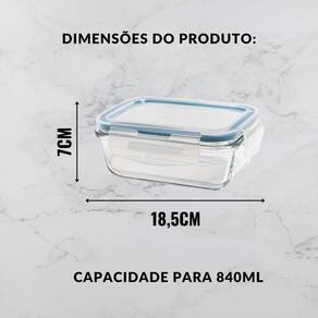 Palavras-chave: Pote de vidro hermético, pote de vidro retangular, pote hermético 840ml, pote para alimentos, pote de vidro com tampa, pote para marmita, organização cozinha, armazenamento de alimentos, pote de vidro AD, pote resistente, pote durável, vedação segura.