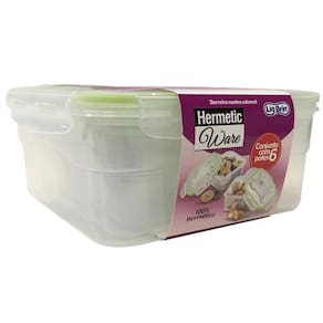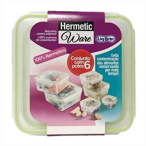 Conjunto com 6 Potes Herméticos Quadrados em Polipropileno Transparente Hermetic Ware - Ligbrin