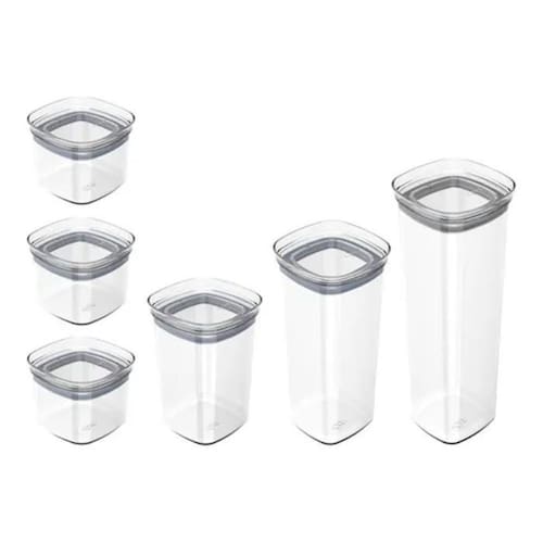 Kit 6 potes organizador herméticos porta alimentos mantimentos f6061 Cor: transparente F6061 Conjunto block - 6 peças 03 - potes de 450ml 01 - potes de 1 litro 01 - pote de 1,5 litros 01 - pote de 2 litros Dimensão e peso: - medidas pote pequeno: 10,5cm  c  x 10,5cm  l  x 8,5cm  a  - medidas pote médio: 10,5cm  c  x 10,5cm  l  x 16cm  a  - medidas pote grande: 10,5cm  c  x 10,5cm  l  x 23cm  a  - medidas pote extra grande: 10,5cm  c  x 10,5cm  l  x 30,5cm  a  Organizador hérmeticos block   pote vedação herméticos  Pode ser montados em blocos, empilháveis Adaptando a qualquer tipo de armário, e varias organizações. Como alimentos da cozinha, doces, escritórios, capsulas de café O pote com vedação e bpa free armazena e conserva os alimentos. Por os potes serem transparentes, tem-se a facilidade de visualização do que está armazenado sem precisar abrir os recipientes. O recipiente pode ser empilhado, assim ocupando espaços reduzidos de armários e bancadas. Conserva os alimentos por mais tempo. Empilhável e modular. Pote porta mantimento Vedação hermética em silicone Livre de bpa Armazene seus alimentos Práticos, e modulares. Empilhe, encaixe e enxergue facilmente o conteúdo. Material: - poliestireno; - silicone. O pote possui sua tampa com vedação em silicone, que bloqueiam a entrada do ar, protegendo o alimento do ambiente externo, mantendo-os com sua textura e sabor por mais tempo. É perfeito para armazenar biscoitos, cereais e variados tipos de alimentos com segurança.