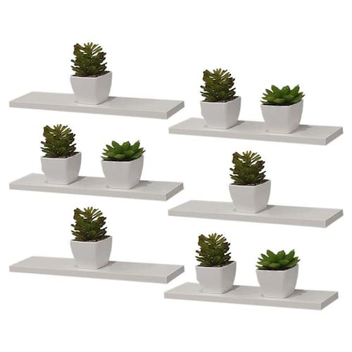 O Kit 6 Prateleira Branca MDF 40 x 20cm Suporte Invisível foi desenvolvido pensando em deixar o seu ambiente mais criativo e moderno de forma simples e prática. A prateleira é produzida em MDF 12mm na cor branco brilhante, seus suportes Invisíveis são ideais na organização de espaço, tornando a prateleira um produto versátil, que se adequa a todos os tipos de decorações. Exponha seus livros favoritos, enfeites, coleções ou porta-retratos e garantirá elogios ao seu ambiente! Suas medidas são: 40cm largura x 20cm profundidade x 1,2cm espessura Quantidade: este kit contém 6 prateleiras Cor: branco Acabamento: brilhante Tipo de suporte: embutir / invisível (acompanha 1 par de suportes para cada prateleira) Suporta aproximadamente 3kg quando instalada em parede de alvenaria. Para fácil limpeza, utilize pano levemente umedecido. Não utilizar produtos químicos ou abrasivos. Acompanha embalagem com as instruções de montagem e fixação. Cada prateleira acompanha um par de suportes tipo invisível / embutir para instalar na parede. Obs.: Todos os itens de decoração das fotos não acompanham o produto.