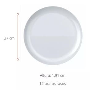 Kit Conjunto Jogo 6 Pratos Raso Opaline Blanc Redondo Duralex Vidro Temperado Branco Restaurante DomésticoOs pratos são fabricadas em vidro temperado, proporcionando maior resistência a impactos e podem ser levados ao microondas, freezer, geladeira e lava-louçasDica de uso e preservaçãoFicha TécnicaModelo: Raso Opaline Blanc Quantidade De Pratos: 6 unidadesCor: brancoDimensões: 27cmAltura: 1,91cmComposição: vidro temperadoMarca: Nadir FigueiredoLinha: DuralexDesenho: redondoTamanho:Comprimento: 27cmAltura: 1,91 cmPode ser utilizado:- Microondas- Lava-louças
