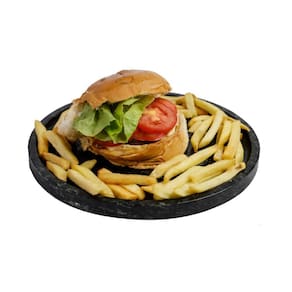 Kit 6 Pratos de Hambúrguer Porções Redondo Pedra Sabão 26cm