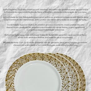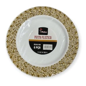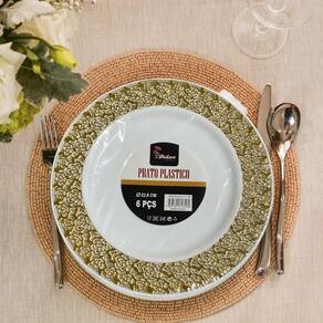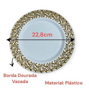 Design Elegante: A borda Dourada combina beleza e requinte, tornando cada refeição uma experiência especial. Material Durável: Feitos em acrílico de alta qualidade, os pratos são resistentes, leves e perfeitos para uso interno e externo. Versatilidade: Ideal para servir saladas, entradas, pratos principais ou sobremesas em festas, celebrações e reuniões familiares. Fácil de Limpar: Podem ser lavados à mão, facilitando a limpeza após o uso.