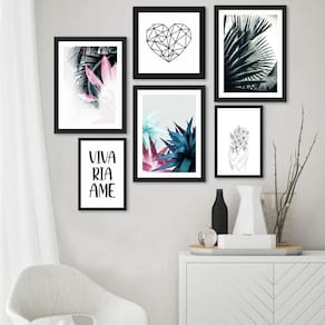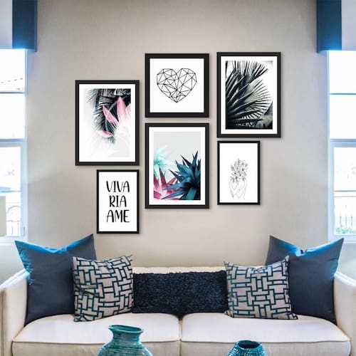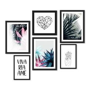 Kit 6 Quadros Decorativos Folhagem Com Frase