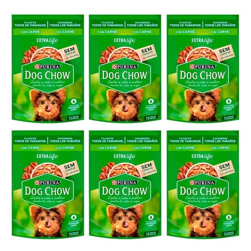 Ração para Cães Dog Chow Filhotes de Todos os Tamanhos Carne 100g PURINA® DOG CHOW® para cães filhotes de todos os tamanhos é um alimento 100% completo e balanceado. Por conter ingredientes de alta qualidade, além de nutrientes que oferecem uma nutrição plena e saudável para dar mais vitalidade ao seu cãozinho, o alimento pode ser dado de forma individual, sem a necessidade de complementação com a ração seca. Com sabor carne, o sachê vem com um molho encorpado e suculento, que agrada até mesmo os paladares mais exigentes. Além de cuidar da saúde com o seu pet, o alimento úmido é um ótimo agrado para ser incorporado na alimentação diária do seu cãozinho. Essa nova fórmula contém prebiótico natural, que equilibra a flora intestinal, sem afetar os hábitos do seu cão. PURINA® DOG CHOW® apresenta agora em todos os produtos ExtraLife®, um mix de antioxidantes, vitaminas e minerais, que ajuda a maximizar a qualidade de vida do seu cão dia após dia. Isso porque nós sabemos que o seu pet é um membro especial da sua família e, por essa razão, nós nos importamos com a sua saúde, cuidado e bem-estar. Quando você traz um cão para sua família, sua vida muda. Você se compromete com novas responsabilidades, respeitando e cuidando de todas as necessidades do seu cão. Ele, por sua natureza incondicional, enche sua vida de mais vida; mais companhia, cumplicidade e momentos especiais, contribuindo para o bem-estar de toda sua família. Ean: 7891000244746 Ean: 7891000244746