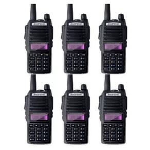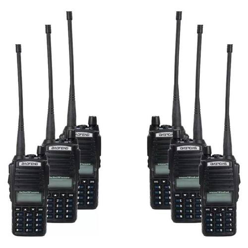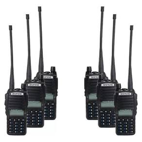 Kit 6 radios baofeng uv 82 plus walkie talkie vhf uhf ip68 cor preto Rádio comunicador ideal para profissionais que necessitam de comunicação rápida durante o dia, com a praticidade de apertar apenas um botão.