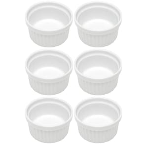 Kit 6 Ramequins Canelado 50ml Porcelana Classic Branco Lyor Servir Petiscos.