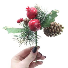 Kit 6 Ramos Romã Decoração De Natal Artificial Com Brilho 16cm -