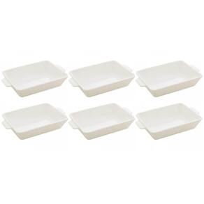 Garantia: 3 meses / Peso de cada 0,646kg / Cor predominante: branco / Ref: 7798140205920 Dimensões de cada: 23,5cm (C) x 15cm (L) x 5cm (A) Dimensões área interna de cada: 18,5cm (C) x 13cm (L) Material: porcelana. OBS: -Lavar com detergente neutro, esponja macia e secar imediatamente; -Não utilizar produtos químico; -Lava Louça: Sim -Microondas: Sim -Forno: Sim -Fogão: Não -Freezer: Não