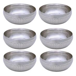 Kit 6 Saladeiras Tigela Bowl Inox Martelado 18Cm 1350Ml