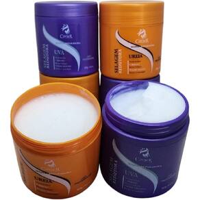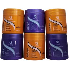 Selante uva cavier cosméticos Composto por aminoacidos, vitaminas e queratina hidrolisada e oleo de semente de uva que além de alisar, tratam os cabelos. Deixando-os com um liso natural, macios, com muito brilho e hidratados. Não amarelam ou desbotam os fios. A selagem redutora uva cavier é um tratamento para recuperar as massas capilares danificadas selando as escamas do cabelo, acabando com o frizz e reduzindo o volume. O tratamento age deixando os cabelos, macios, emolientes, com brilho e hidratados, sendo sua aplicação rapida e mais eficiente que qualquer hidratação. Esse tratamento devolve aos fios a massa capilar perdida ao longo do envelhecimento dos fios e pelas agressoes diarias como: sol, vento, chapinha , secador e outras quimicas. Modo de usar: após lavar os cabelos com anti residuos, retire o excesso da agua com o auxilio de uma toalha e aplique a selagem redutora uva cavier nos cabelos umidos, deixe agir por 10 minutos e proceder com a tecnica convencional de escovação e chapa. opicional . Enxague em seguida. === Selante ureia cavier cosméticos 6 peças É um excelente produto que promove um liso duradouro, é indicado para todos os tipos de cabelos e compativel com qualquer tipo de quimica. O tratamento alisa e reconstroi profundamente a estrutura dos fios, repoe a massa capilar perdida e desemborracha os fios emborrachados. Possui ação antifrizz. Composta por aminoacidos, vitaminas e queratina hidrolizada e ureia que alem de alisar, tratam os cabelos, deixando-os com um liso natural, macios, com muito brilho e hidratados. Não amarelam ou desbotam os fios. Modo de usar: após lavar os cabelos retire o excesso de agua com o auxilio de uma toalha e aplicar o selante de ureia respeitando 1,5 cm da raiz , deixar agir de 15 a 30 minutos e finalizar com escova e prancha opcional . Enxague em seguida.