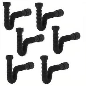 Kit com 6 unidades - Sifão Sanfonado Universal Preto - Banheiro Cozinha Tanque