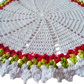 - Material: Fio de alta qualidade, resistente e durável. - Tamanho: Aproximadamente 35cm de diâmetro. - Cor: Branco, Vermelho e Verde - Fácil manutenção: Lavável e prático para uso diário.