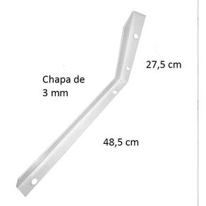 Você tem ideia nos inúmeros lugares que pode utilizar uma mão francesaA mão francesa pode ser utilizada em prateleiras, mesas, suportes, bancadas, vidros, entre outros.Nossas mãos francesas são muito resistentes, aguentando até 50 kg por suporte. Acompanha 12 doze parafusos e 12 doze buchas Nº8 por suporte.=====================Informações Técnicas:Cor: BrancaResistencia: até 50 kg por suporteDimensão: 48,5cm x 27,5cmEspessura da Chapa: 3mmOBS: Recomenda-se espaçamento máximo entre os suportes de 50cm.Inclui no kit:- 6x Mão francesa Suporte - 12x Parafusos 5,0 x 40mm- 12x Buchas 8mm=====================
