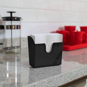 Garantia: 90 dias / Peso: 378g / Cor predominante: preto / Referência: UZ418PRX6 Dimensões de cada suporte: 10,5cm (C) x 14cm (L) x 8,9cm (A); Comporta (cada): até 50 guardanapos pequenos; Conteúdo: 6 suportes para guardanapos; Material: polipropileno (PP).