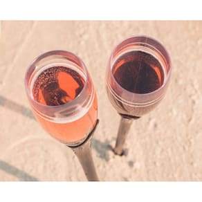 Ideal para espumantes, a inovadora taça Beach foi desenvolvida para usar na praia, com uma haste especial para apoiar na areia!