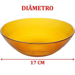 Características Gerais do Produto: - Material: Vidro - Modelo: Tigela Amber em Vidro - Cor: Amarelo - Dimensões aproximadas: Altura 5cm X Diâmetro 17cm - Capacidade em litros: 600ml Garantia: - Garantia do site - 1 Mês