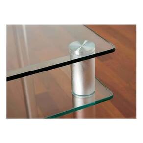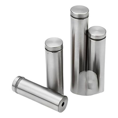 Altura: 10cm 100mm . Diâmetro: 2,5cm 25mm . Espessura compatível: vidro, madeira, acrílico e outros, de 10mm até 12mm. Recomendado furo de 12mm a 14mm no vidro, acrílico ou outros materiais. Parafuso de ajuste com 20mm para um encaixe preciso e seguro. Acompanha 2 arruelas plásticas transparentes para garantir um encaixe perfeito e proteger o material.