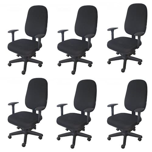 Cadeira modelo Presidente ideal para o seu escritório ou home office. Possui uma estrutura resistente e ergonômica. Rodízios em PP (Polipropileno), capa na estrela, pistão à gás, espuma injetada, braços reguláveis e seu acabamento é em tecido J. Serrano na cor preta. Altura do Conjunto: 117 cm Ambiente: null Ambiente Principal: Escritório Cor: Preto Informação Complementar: 6x Cadeira Giratória Carenada Braço Regulável Presidente Tecido J. Serrano Preto Largura: 58 cm Altura: 117 cm Peso: 11,5 kg Profundidade: 62 cm Necessita Montagem: Sim