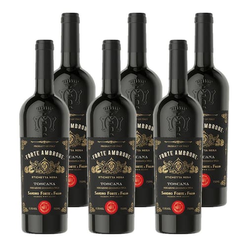 Kit 6 Vinhos Forte Ambrone Etichetta Nera IGT Toscana Tinto Itália 750ml