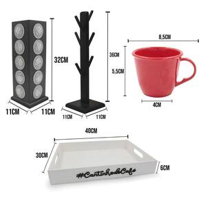 Kit 6 xicara porta capsulas para dolce gusto bandeja acrílico cores Cor xícaras: variada Composição do kit;6 xícaras1 bandeja1 suporte de xícaras1 porta capsulas para nespressoXícara 85ml acrílica As xícaras são muito bonitas e esse acrílico traz um charme a mais ao produto, deixando-o mais decorativo para a hora do café. Você pode usar em casa ou no escritório, ter sempre à mão sua xícara para tomar aquele cafezinho, capuccino e até um chocolate quente se estiver com vontade. Capacidade 85mlMaterial - acrílicoAltura - 5,5 cmLargura - 8,5 cm Bandeja cantinho do café versátil e multiuso Feita em mdf de 6mm com pintura em tinta acrílica na cor preta ela é ideal para organizar o seu lar, servir um cafezinho para os amigos, organizar papeis de escritório entre diversas outras utilidades. Bandeja versátil de qualidade, combinando com todos os ambientes no qual estiver Suas medias são40x30x6 externa 38,5 x 28,5 x 5,5 na parte interna Possui as laterais vazadas como uma alça. Suporte porta xícara caneca em 6 pinos xicaras Esse é o produto ideal para decorar o seu tão especial cantinho do café ou até mesmo presentear uma pessoa querida, além da beleza o porta xicaras é feito em mdf que é muito resistente, ideal para xicaras/canecas de até 240ml. Com esse porta xicaras você vai conseguir deixar seus armários muito mais organizados. Medidas suporte:Altura: 36 cmBase: 11x11Peso: 282gMaterial de composição: madeira pinus Porta cápsula vazado a laser nespresso. O nosso porta cápsulas, guarda com segurança e deixa organizado prendendo bem a cápsula sem deixar cair produto bem desenvolvido com muito charme e tons modernos para deixar o ambiente mais bonito Esse porta cápsulas tem ar moderno que mescla os tons e veio da madeira de pinus com o local em preto aonde é encaixado as cápsulas sendo assim um da destaque ao outro organize seu canto do café com as cápsulas sempre a mão e ainda decore o seu ambiente com certeza vai ser uma peça que vai chamar a atenção e tirar elogios Feito em pinus de reflorestamento natural e de mdf com pintura em preto tinta acrílica Comporta 28 capsulas nespressoMedidas 32x10x10 O pinus é natural, não leva verniz e nem seladora. Por se tratar de madeira natural deve haver variações na tonalidade e apresentar veios da madeira em locais distintos. - entregam para todo país Quem somos